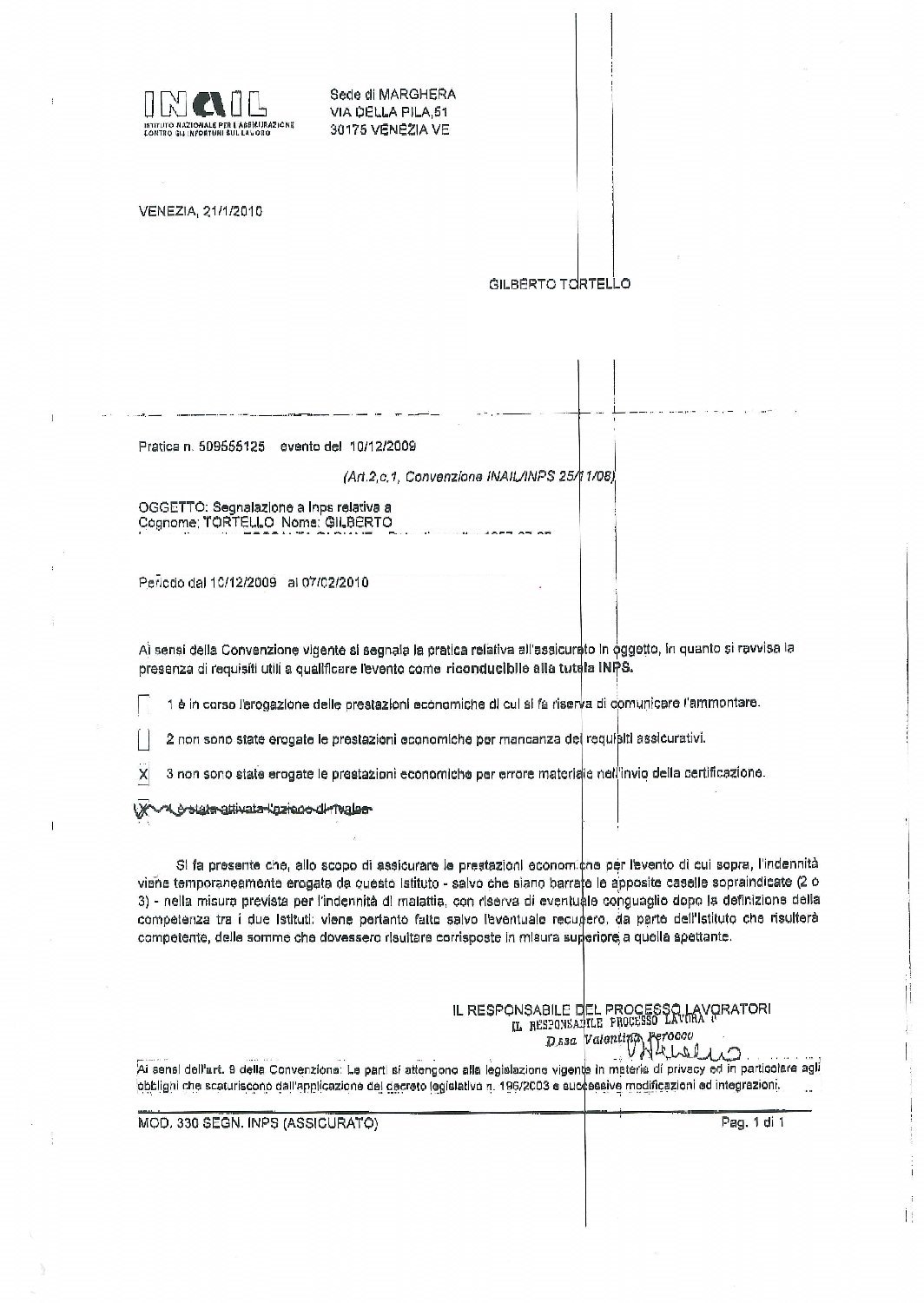 dell'INPS l' "evento" del 10.12.2009. L'inaudito documento dell'INAIL